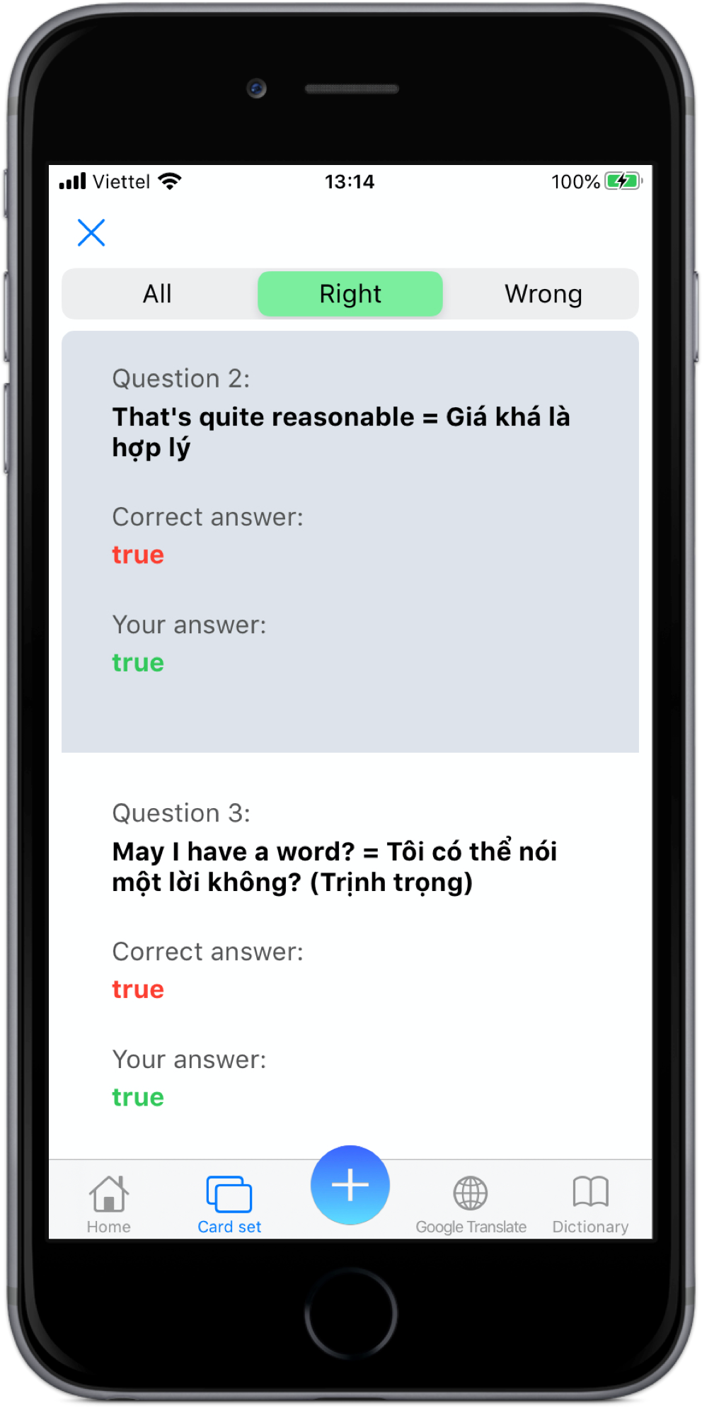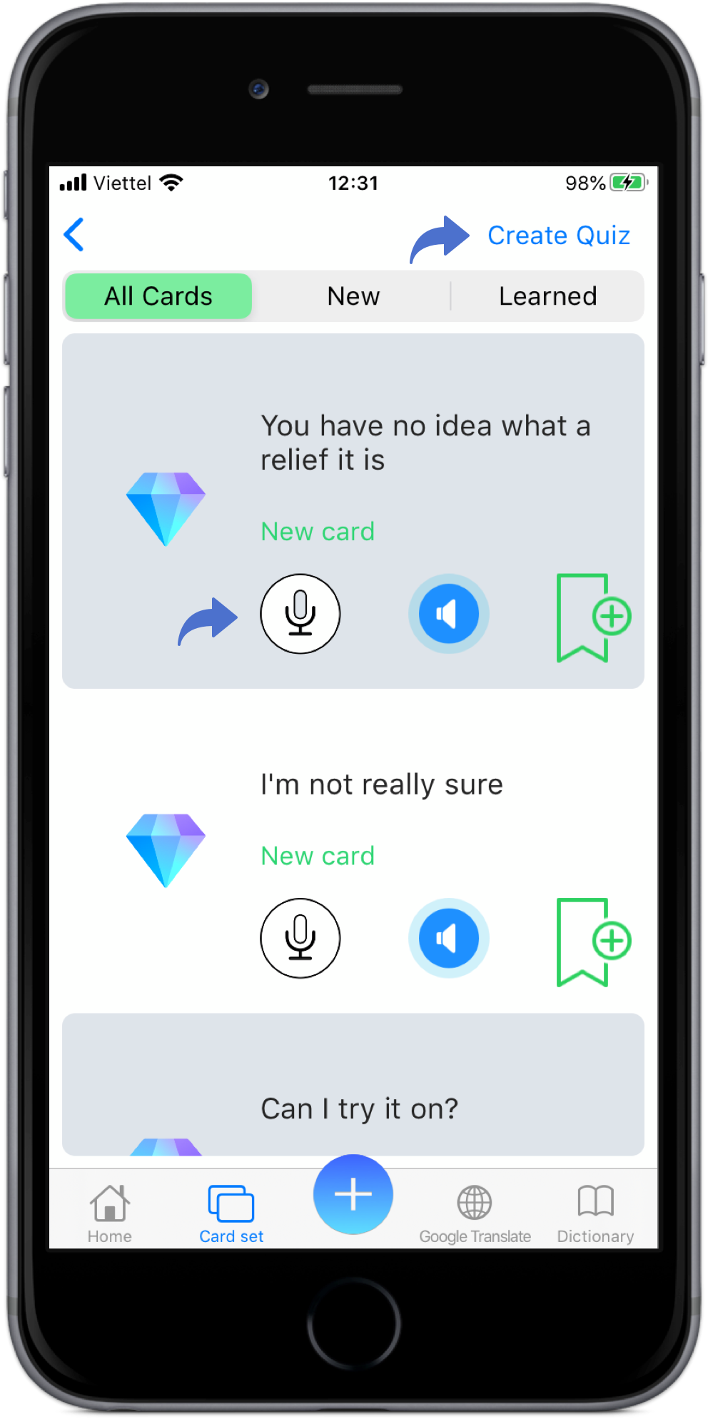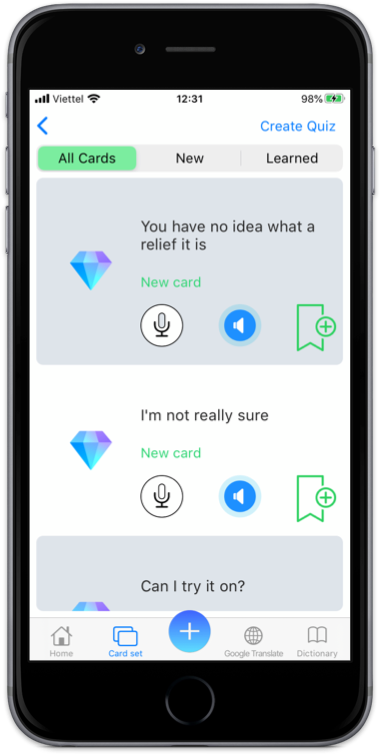 Click on Book Mark button to mark it as learned card, click again to unmark it