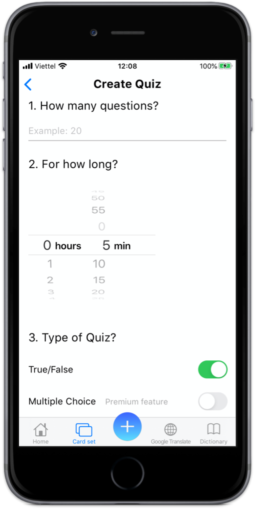 Click on "Create Quiz" button to create your own Quiz to Practice.